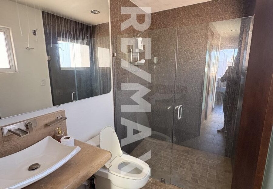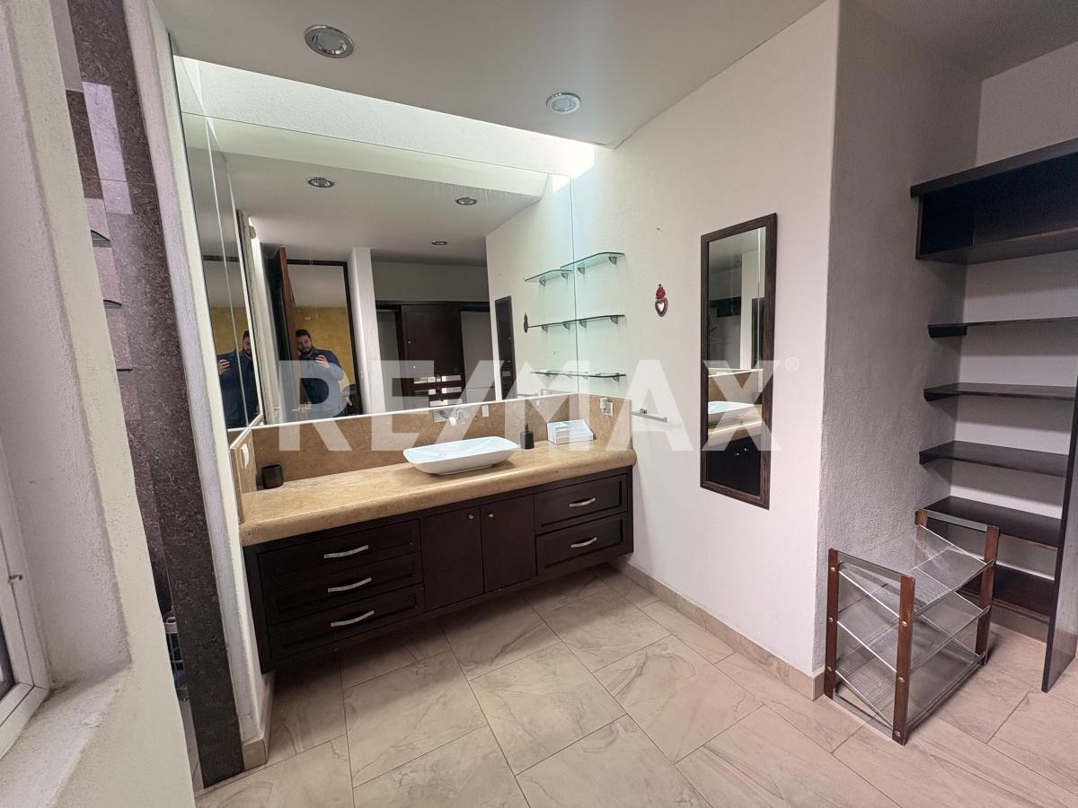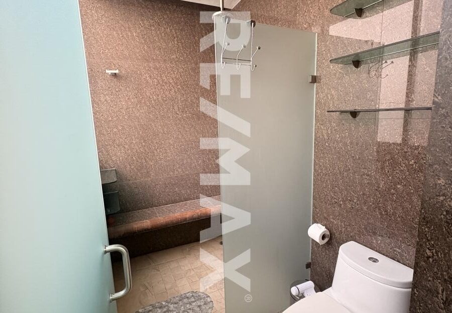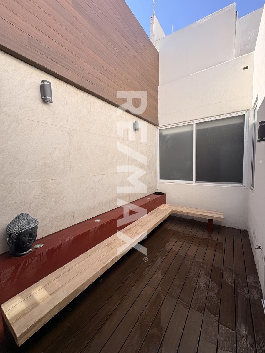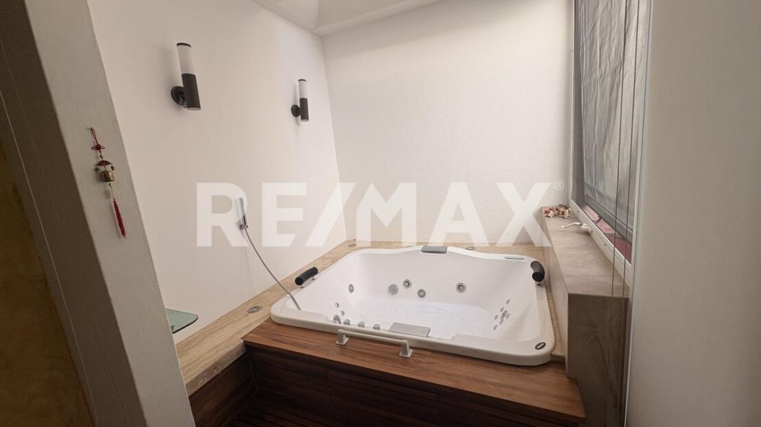 Amplia recamara principal en planta baja, con jazuzzi en la recamara (fuera del baño), baño completo con vestidor, cuenta tambien con un patio interior con deck sintetico en piso, banca fija a lo largo de todo el patio con iluminacion para relajarte dentro de tu misma habitacion.